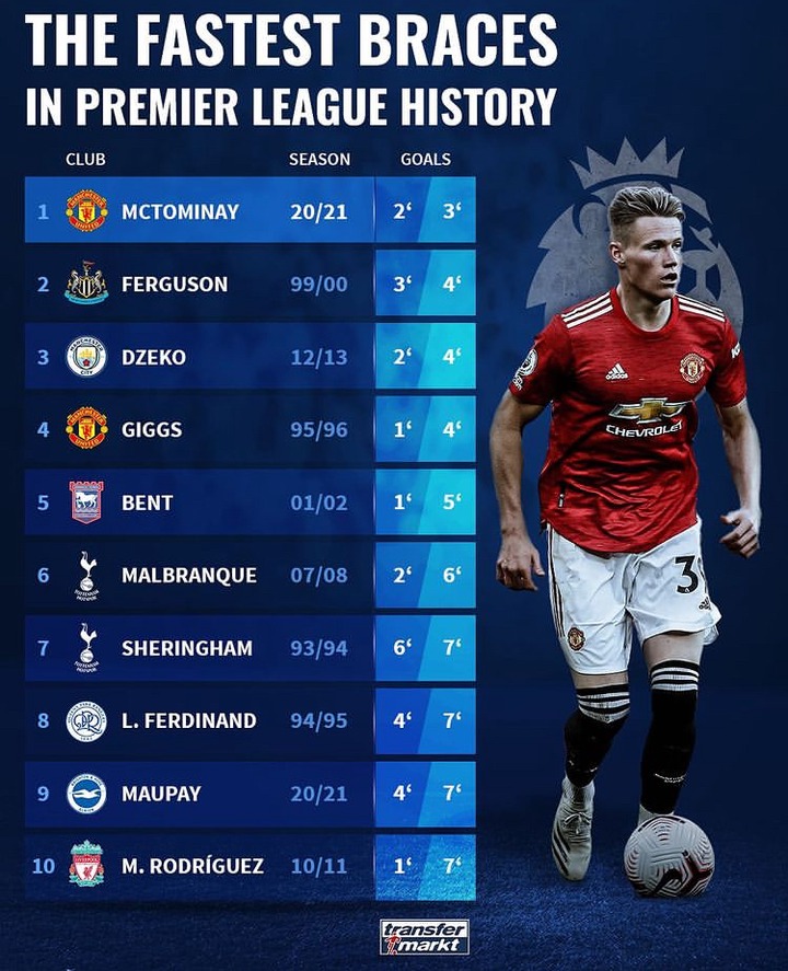 Top 10 Premier League Fastest Brace In The History - Who Could Break Mctominay’s Record ?