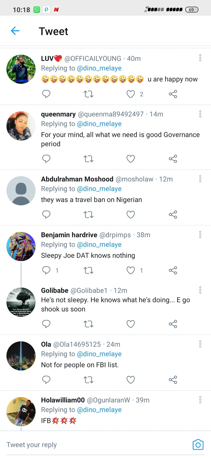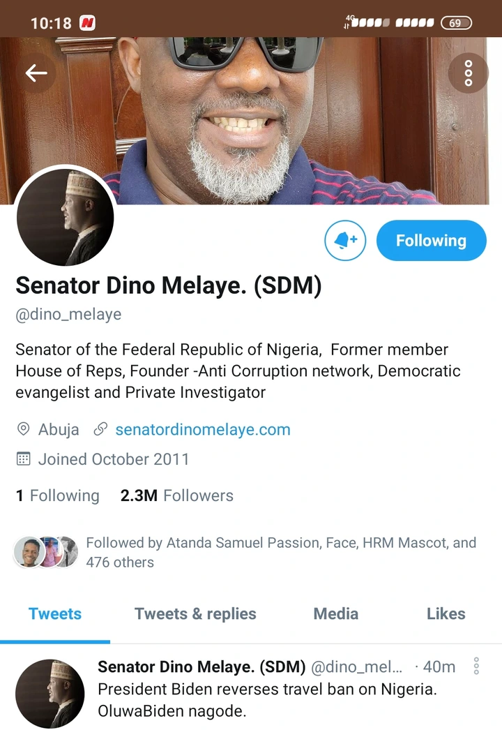 After Joe Biden reversed the travel ban on Nigerians, see what Dino Melaye said about it