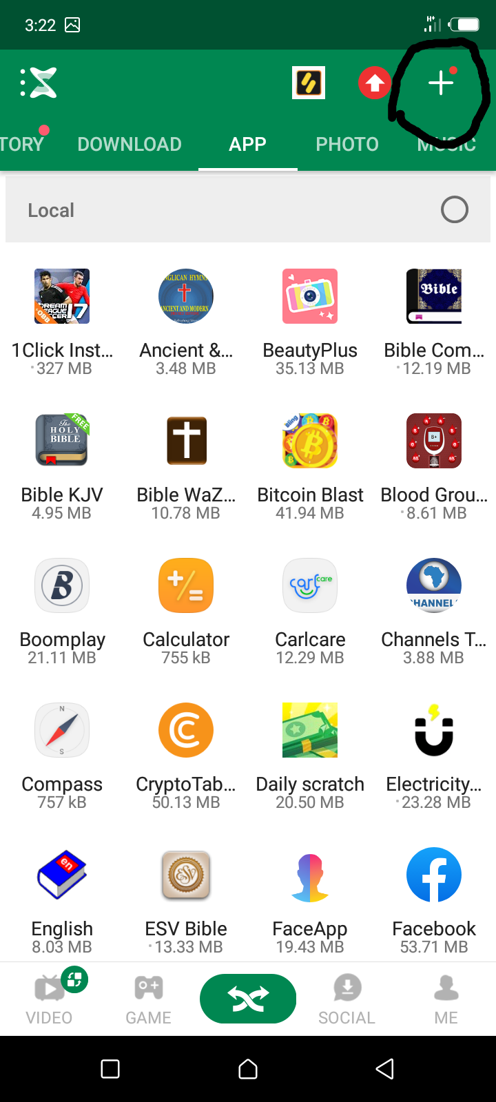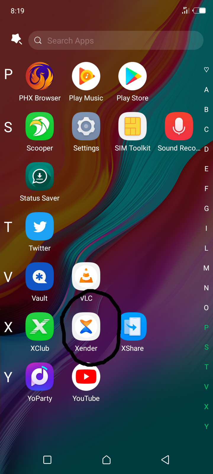 When the Xender app has successfully opened, tap on the cross symbol at the top right corner of your device.