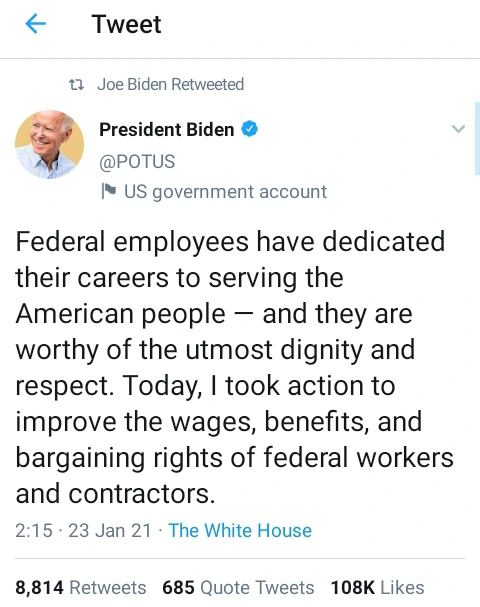 On Saturday 23rd of January, 2021 the new United States President, Joe Biden released a new announcement on Twitter, via his official Twitter account.
